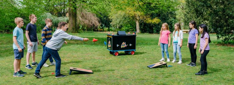 Unterwegs treten die Kinder in Teams in verschiedenen Mini-Games gegeneinander an – von Quizfragen über Geschicklichkeitsspiele bis hin zu sportlichen Herausforderungen.