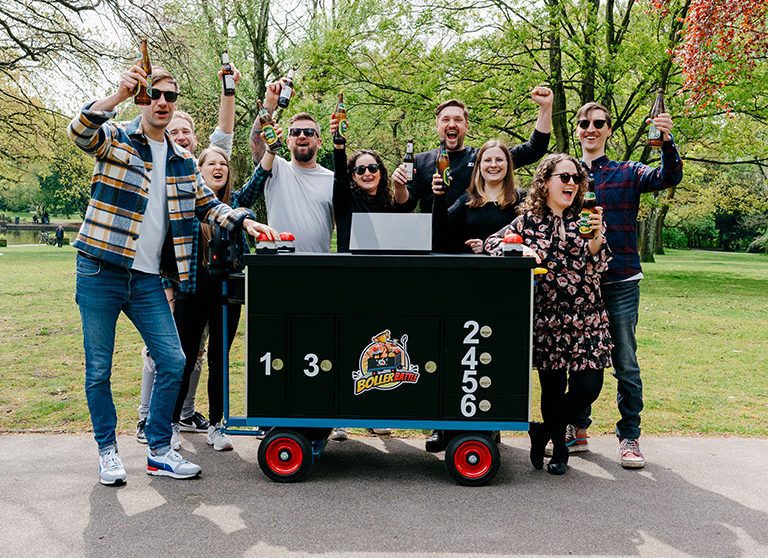 Outdoor-JGA für bis zu 20 Personen gesucht? Mit Boller Battle seid Ihr genau richtig! Mini Games, blinkende Buzzer und eine coole Sundanlage sorgen für Eure mobile Gameshow unter freiem Himmel und zeitgleich für ein unvergessliches Gruppenerlebnis!